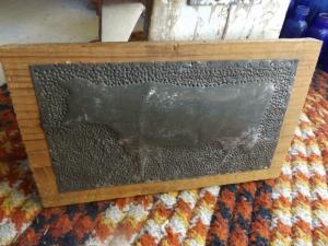 Old Primitive Vintage Punched Tin Cow Mounted on Wood Farm Sale Find PATINA!