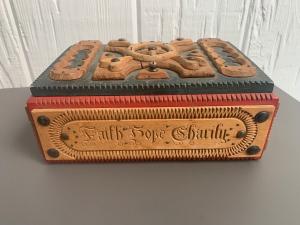 ANTIQUE WOOD CARVED BOX FOLK ART PRAIRE DU SAC WIS. NAMED Casper Accola 1927