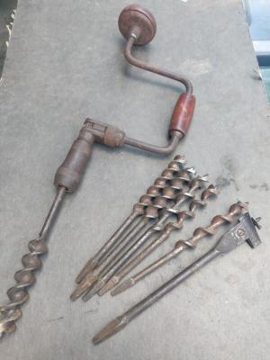 Hand Crank Drill Woodworking Tool Primitive Antique Vintage