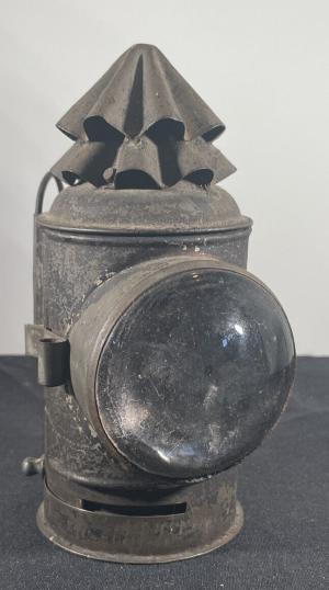 ANTIQUE Tin Lantern Bull Eye Glass w/ Double Top CoverLatch 7