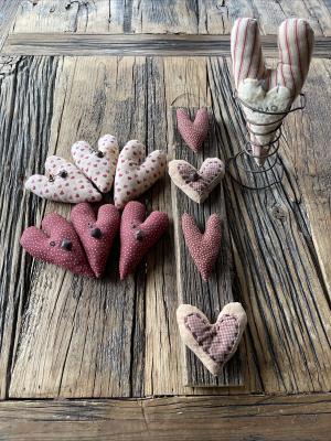*~*PRIMITIVE*~* HP FOLK ART PRIM VALENTINE SACK *~* HEARTS *~* RECLAIMED WOOD