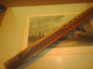 UP FOR BIDD A HAND CARVED FLUTE POSSABLY NATIVE AMMERICAN 1945 DATE ON BACK COOL