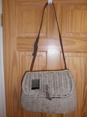 ANTIQUE VINTAGE BROWN WICKER FISHING CREEL BASKET FLY FISHING