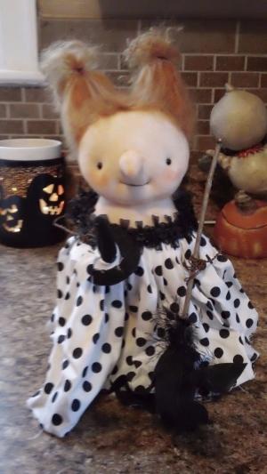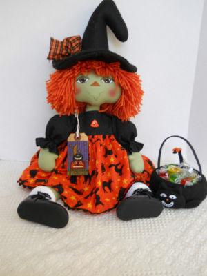 Primitive Folk Art Halloween Little Whimsy Red Headed Witch Helga