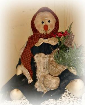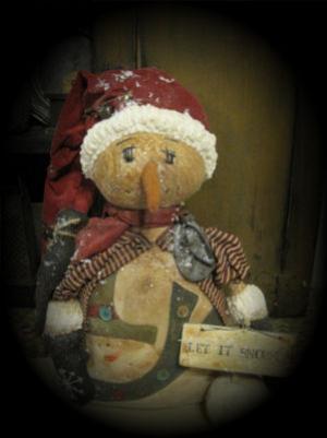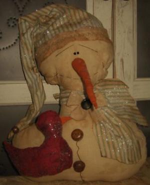 Primitive Folk Art Olde Snowman Doll w/ snowball and crow Christmas Winter