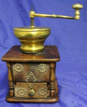 18th-19th Century Wood & Brass Tack Decorated Primitive Coffee Grinder Mill BEST