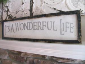Vintage Primitive It's A Wonderful Life/Merry Christmas sign wood 24" wood trim