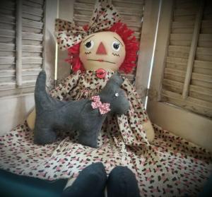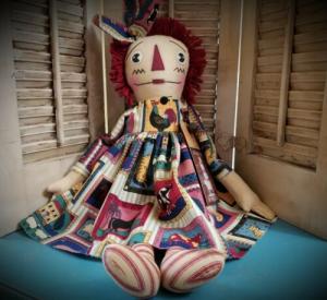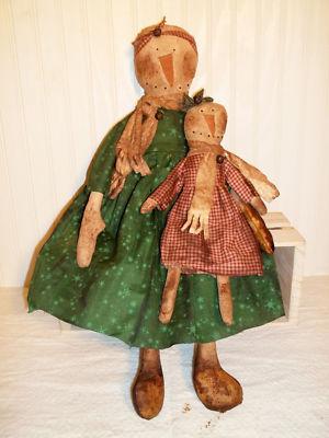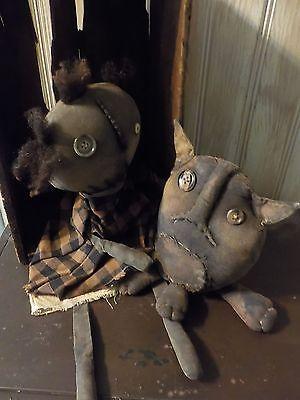 EARLY PRIMITIVE HANDMADE CLOTH RAG DOLL AND DOLLIE - MADE BY OLDE RAGGS USA