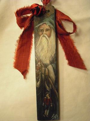 ORIGINAL PRIMITIVE FOLK ART HANDPAINTED SANTA CHRISTMAS ORNIE - SIGNED - MCGUIRE