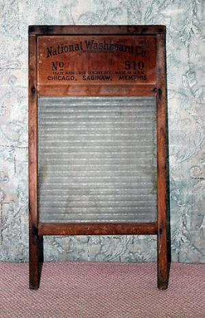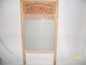 Vintage NATIONAL WASHBOARD CO. Atlantic, No. 510, Glass & Wood Washboard, 24"
