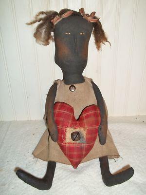 ♥ Primitive Grungy Essie Black Doll with Valentine Heart ♥