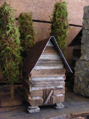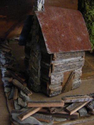 HANDMADE LOG CABIN W STONE CHIMNEY FARM PAT BROYLES