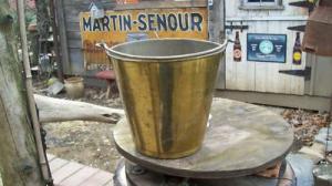 OLD BRASS JELLY BUCKET SAP CANDY POT KETTLE PAN SCRAP COPPER WATER APPLE BUTTER