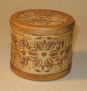 Pantry box (antique) extra large hand made w/ maker's mark (Rose). Dia17 inches