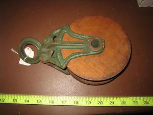 855a cast iron frame wood pulley vintage old older neat antique barn pulley!!