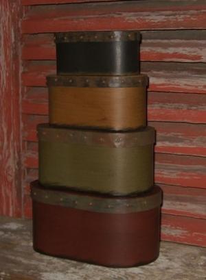 FOUR Primitive Stacking Banded Pantry BOXES-Country Cupboard/Shelf/Table Decor