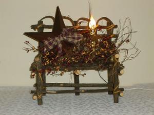 Decorated Bench,Country,Primitive,Home Decor,Stars,Electric Candle,