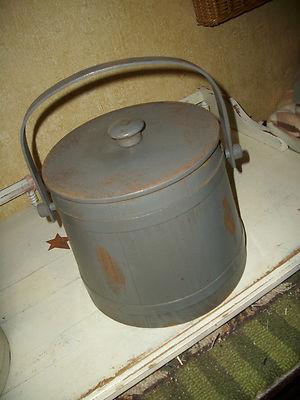 ANTIQUE PRIMITIVE PAINTED WOOD DARK PEWTER FIRKIN/SUGAR BUCKET AAFA