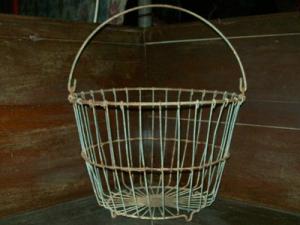 Vintage Primitive Metal Wire Egg Basket 10" x 13"