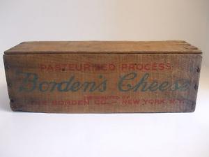 Vintage Antique Old Borden Cheese Crate Wooden Cheese Box Primitive Advertising