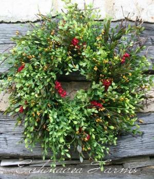 PRIMITIVE PEPPERGRASS & BERRY WREATH COUNTRY COTTAGE DOOR FLORAL DECOR LODGE 103