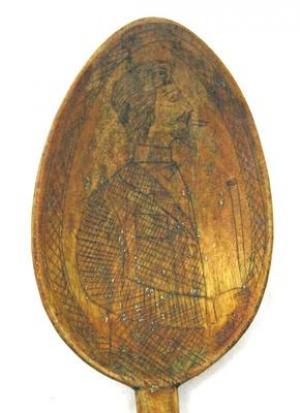 Antique WOODEN TOBACCO SCOOP MAN IN SMOKING JACKET Victorian Folk Art Primitive