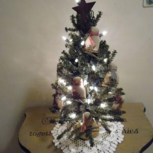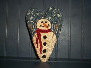 Primitive Punchneedle Heart Snowman Bowl Filler Tuck Ornie