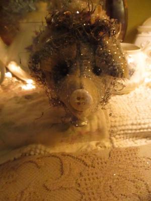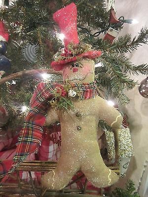 Primitive Prim Folk Art Snowman Winter Pig Doll "Popcorn" Must See!!!