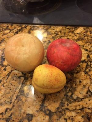 Set Of Three Vintage Stone Apples Peach Fruit Early Antique