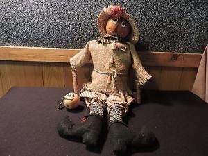 PRiMiTive Halloween Folk Art Doll w/ pumpkin - 17 in. Country Doll Primitives
