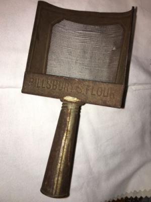 Antique / Vtg. Primitive Americana Pillsbury's Flour Sifter Scoop Metal / Tin