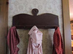 PRIMITIVE WOOD RACK W/5 SQUARE NAILS TO HANG PRAIRIE BONNETS, BROOMS, UTENSILS