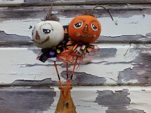 Primitive Halloween Ghost Pumpkin & Cat Noise Makers Pokes Crock Fillers Ornies