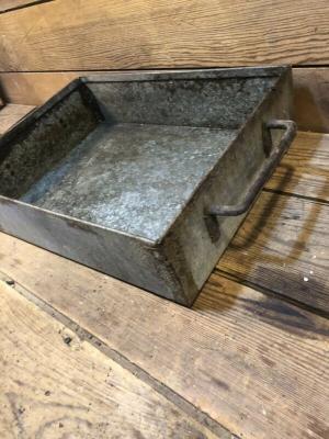 Antique Galvanized Metal Tray Bucket Feeder Tool Box Wood Primitive Rusty Old