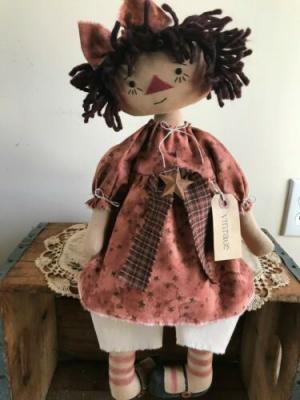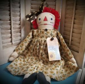 Primitive Raggedy ANN doll ~ Annie *DOLLY * green homespun FOLK ART country