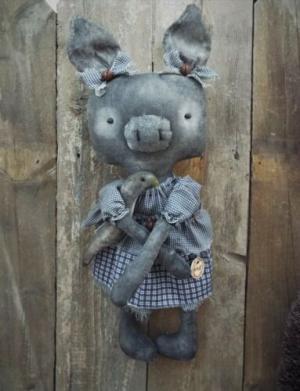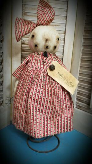 PriMitive Folkart Raggedy Bunny Rabbit - Easter Thyme Bunny ~ Pink Pokey Dots
