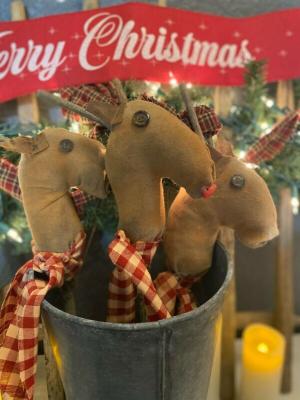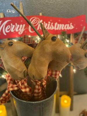 PRIMITIVE CHRISTMAS REINDEER POKES/Ornies OOAK Bowl Filler FOLK ART Winter Doll
