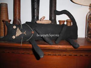 Primitive Lazy Cat Doll Laying Down w Mouse Shelf Sitter Kitty Decoration
