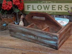 Vtg Primitive Wood Carpenters Tool Box Garden Tote Carrier Primitive/ Farmhouse