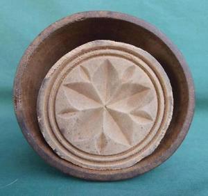 VINTAGE BUTTER MOLD PRESS STAMP 5 PETAL FLOWER ROUND COUNTRY FALL KITCHEN WOODEN