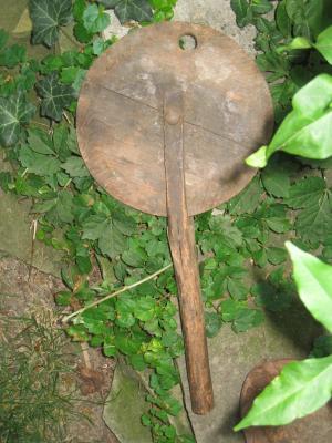 ANTIQUE MAPLE WOOD MASHER/HERB CRUSHER with RARE LARGE 6" DISC (Possibly Shaker)