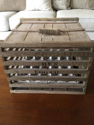 Vintage Hen Egg Carrier Wood Crate W/ Handle holds 90 eggs Farm "HEN EGG CO"