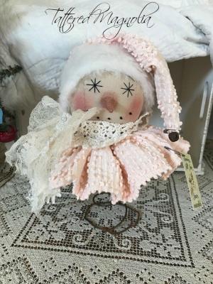 Primitive Folk Art Snowman Rusty Spring Vintage Chenille Shabby Chic Christmas