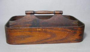 ANTIQUE/RUSTIC FOLK ART CANTED SIDE WOOD WOODEN CUTLERY UTENSIL BOX TRAY