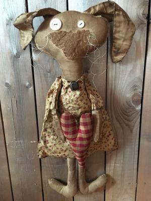 Primitive Bunny Rabbit Doll w Homespun Heart Easter Bunny Doll Rusty Bell