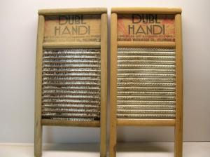 2 VERY OLD DUBL HANDI BRAND NAME WASHBOARDS 18" X 8-1/2" X 1-1/2" COLUMBUS CO.