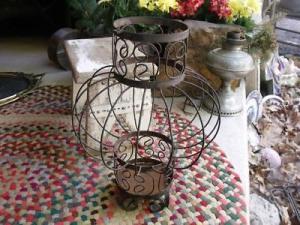 Primitive Vintage Mid Century Gothic Iron Hanging Candle Lantern or Plant Hanger