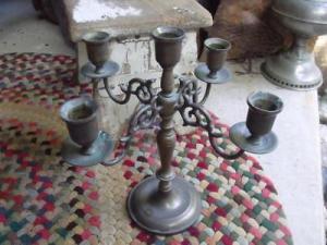 Old Primitive Vintage 4 lb HEAVY Solid Brass Candelabra GREAT Patina!
