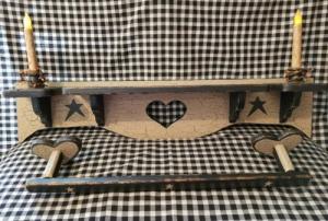 PRIMITIVE Crackled Decor Wood Shelf & Towel Bar Pip Berry rings