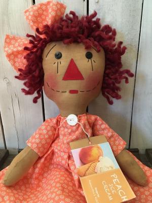 Primitive Raggedy Ann Doll Folk Art Doll Peach Ice Cream 16" **Signed/Dated